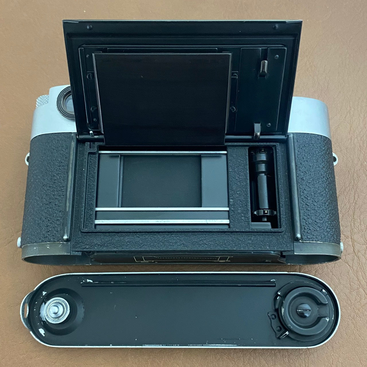 メーター傷やファインダー角部にアタリがありガラス枠が少し歪んでいます。(使用への影響はありません)ファインダーや採光窓には薄いスレが見えます。その他全体的に使用感があります。またグッタペルカは塩ビに交換されていますが綺麗な処置が施されています。 詳細は写真をご確認ください。(文章に記載されていない箇所も写真で判断をお願い致します。) |