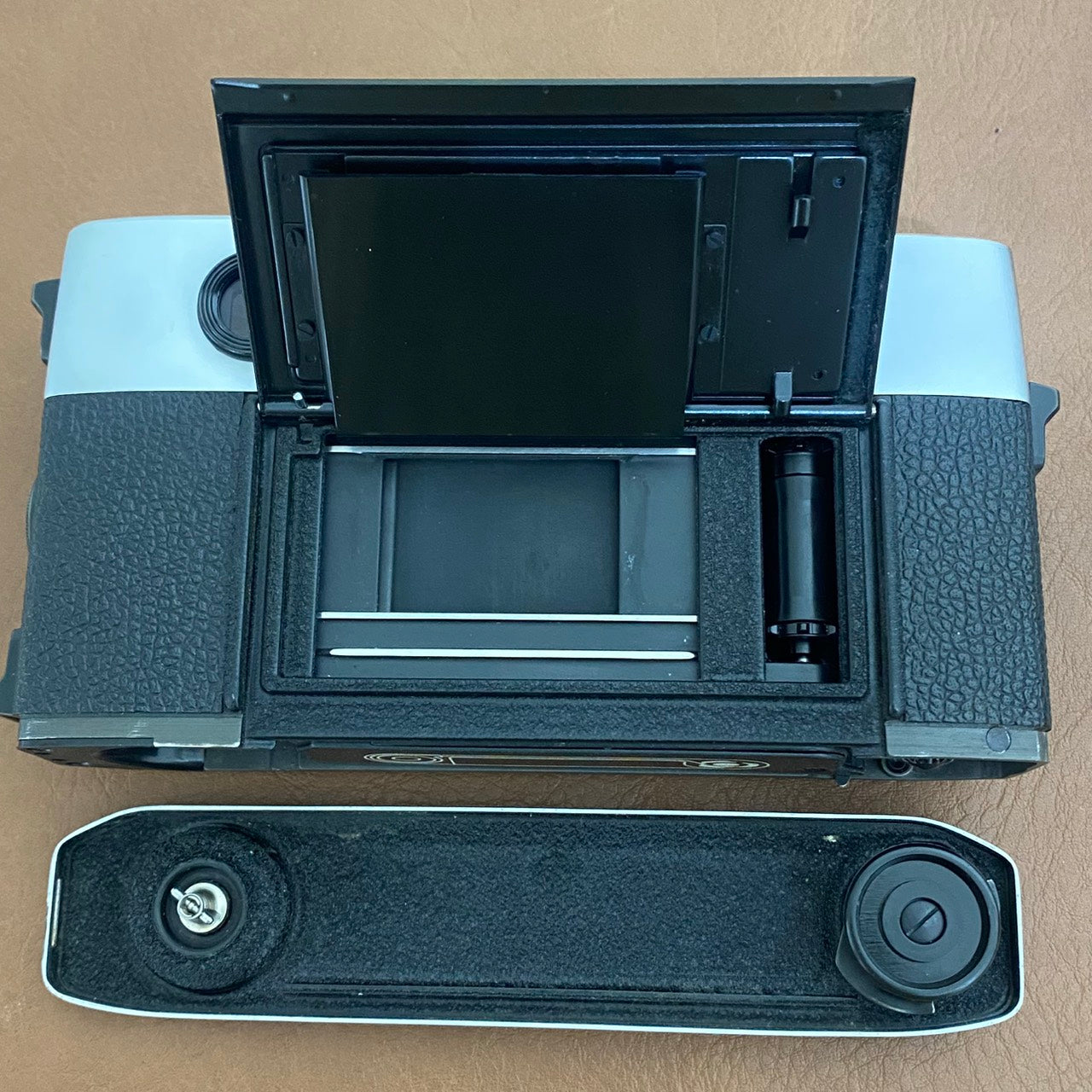 僅かなスレはありますが、年代を考慮すると綺麗な状態です。シャッター幕は清掃済みですが汚れ跡があります。使用への問題はありません。 詳細は写真をご確認ください。(文章に記載されていない箇所も写真で判断をお願い致します。) |